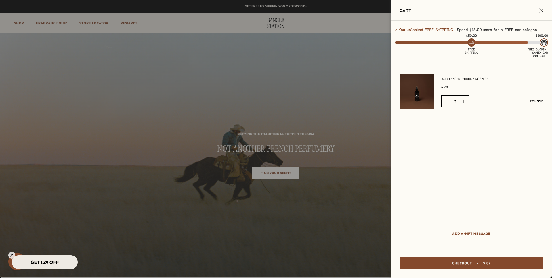 The Challenge: Ranger Station, a premium men's fragrance and grooming brand, wanted to implement an engaging gift-with-purchase (GWP) promotion to increase average order value and reward loyal customers. However, Shopify's native discount system couldn't handle the complex logic they needed: automatically adding free gift products when customers hit specific spend thresholds, applying 100% discounts only to the gift items, updating the cart dynamically, and preventing abuse of the promotion. Their existing solution required manual cart manipulation and often confused customers about which items were free.