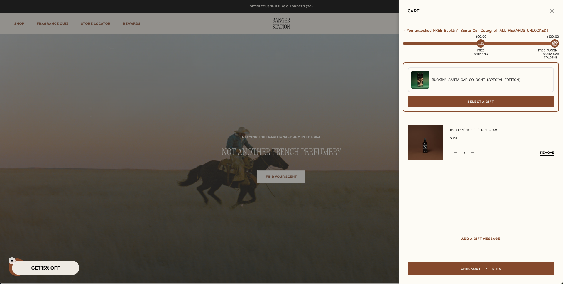 Clear messaging: "You unlocked FREE Buckin' Santa Car Cologne!"